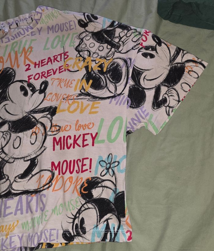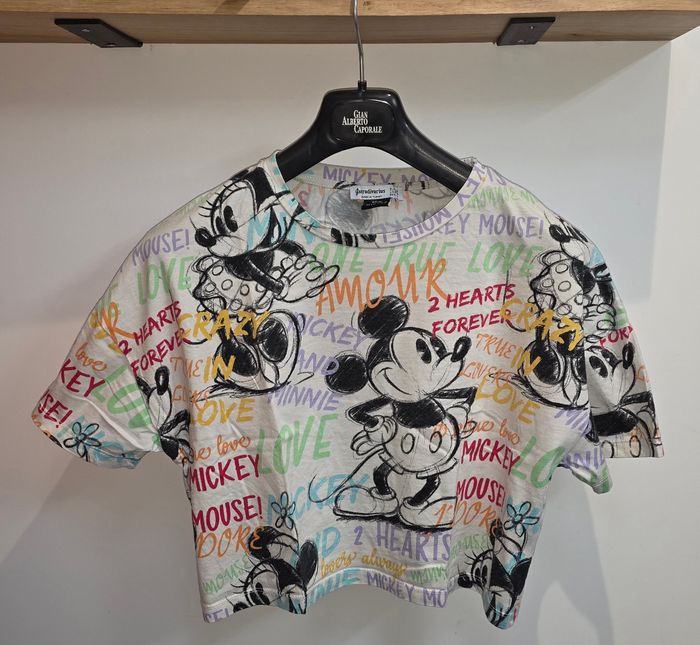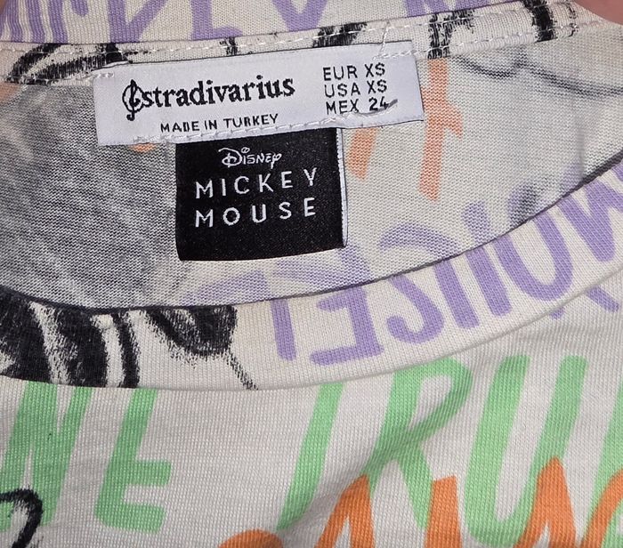 Crop top over size, blanc a motif Mickey coloré. Marque stradivarius en taille XS. 100% coton. Remises sur lots activé ✅️ De plus, moins de frais de livraison 🪙📦 Envois rapide et soigné ! 🚚