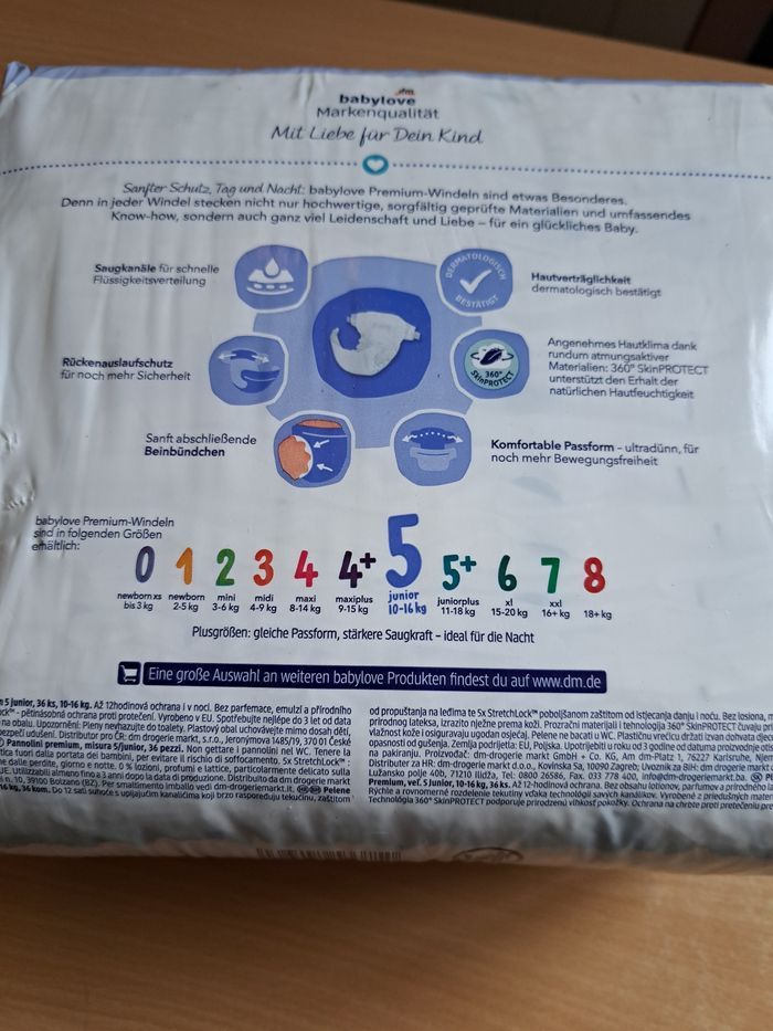 Couches neuves babylove taille 5 : 10-16 kg, 36 pièces