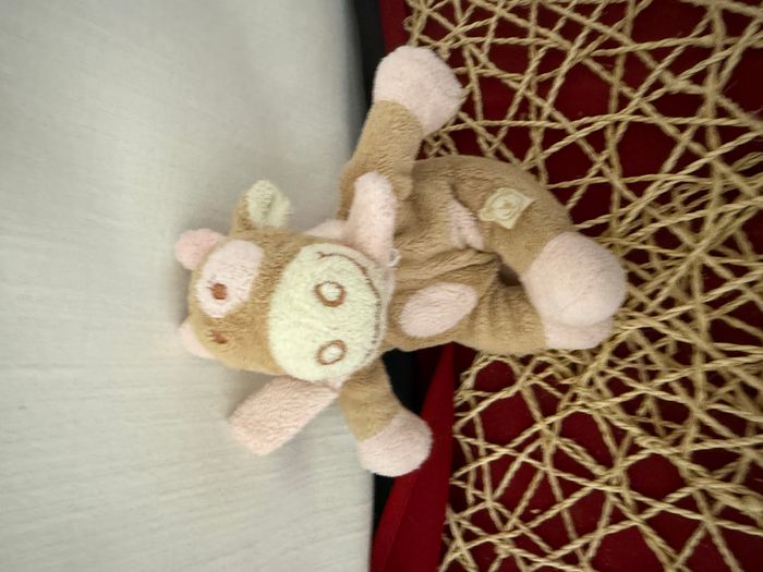 Peluche Lola vache NOUKIE'S beige écharpe rose cocard brodé - photo numéro 5