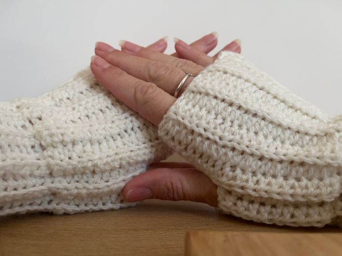 Mitaines en crochet faites main, douces chaudes et confortables. Apportez une touche de chaleur et de style à vos journées fraîches avec ces mitaines en crochet faites main. A la fois pratiques et élégantes, elles gardent vos mains au chaud tout en laissant vos doigts libres. Chaque paire est réalisée avec soin, dans un point côtelé texturé qui épouse bien la main et apporte une belle finition.