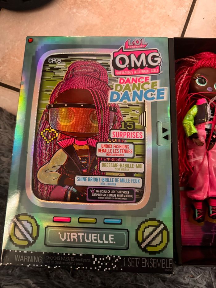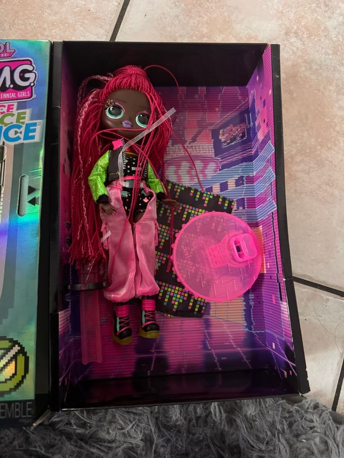 Poupée lol omg dance virtuelle avec sa boîte et contenant indiqué sur la photo