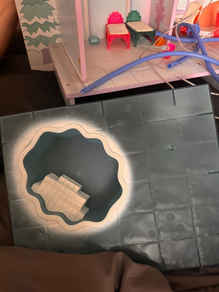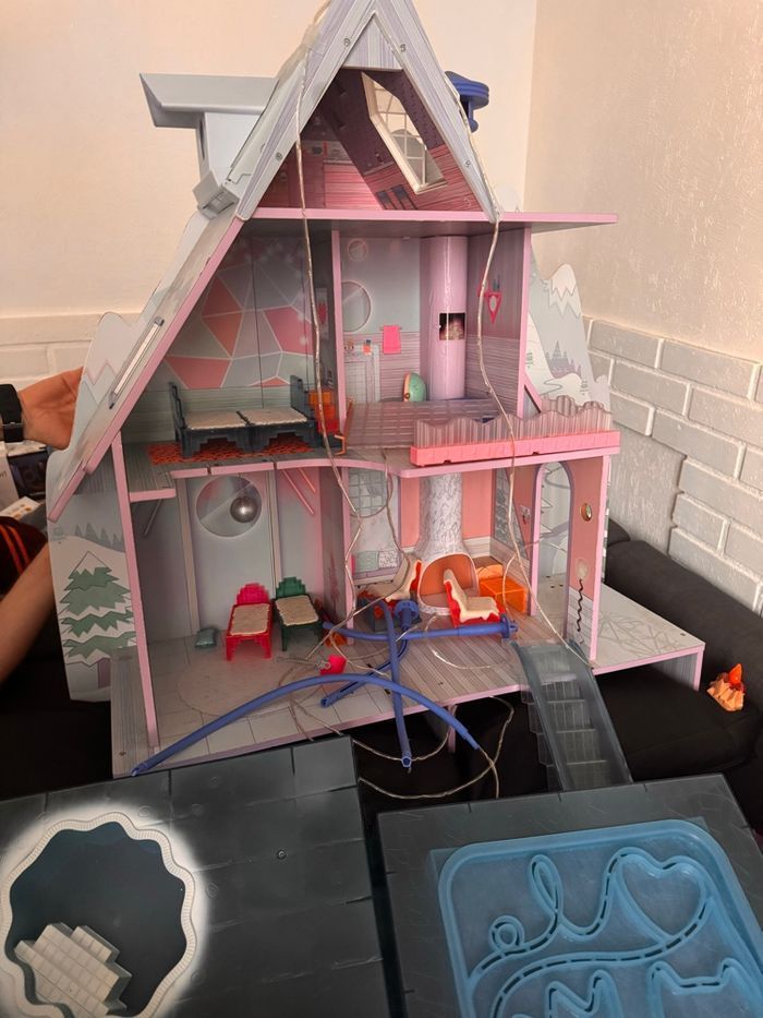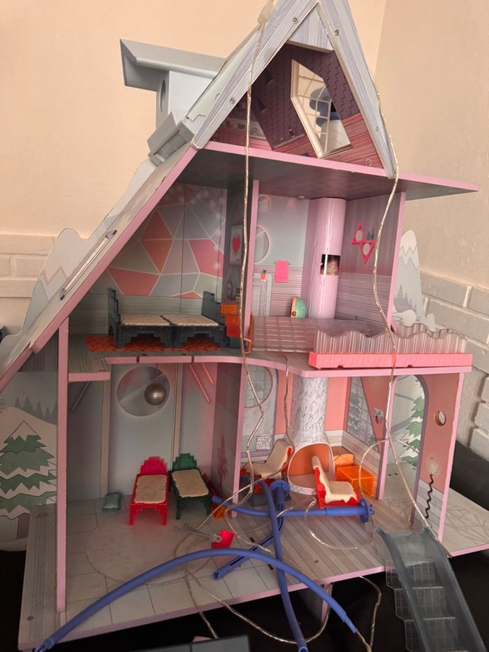 Chalet neige des poupées lol en bon état avec des accessoires piscine lit….comme sur la photo