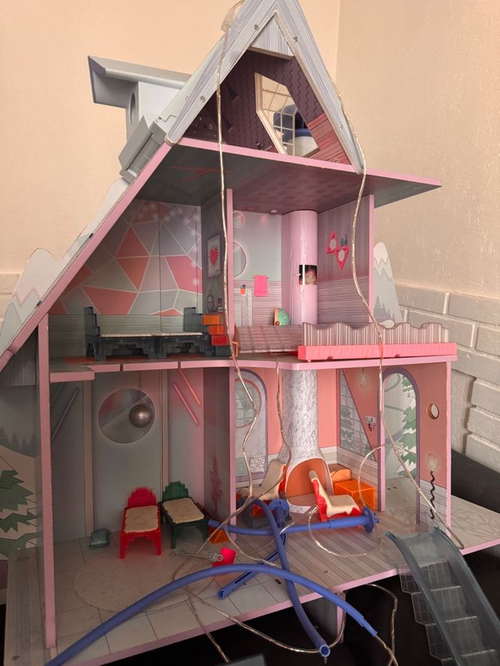 Chalet neige des poupées lol en bon état avec des accessoires piscine lit….