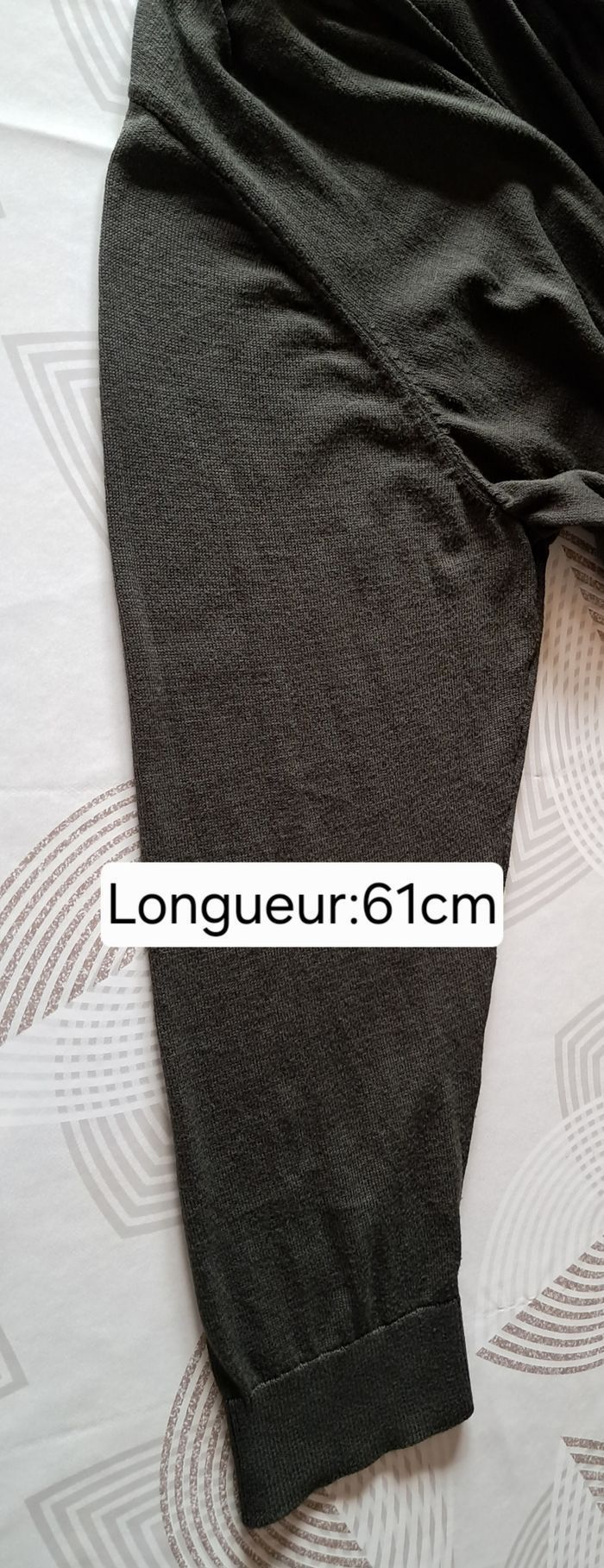 Cardigan long couleur kaki pour femme taille 3XL. Marque MSmode. Porté 1 seule fois. Je le vends car beaucoup trop long pour moi. J'offre la petite broche couleur argentée. Voir mesures et détails sur les photos.