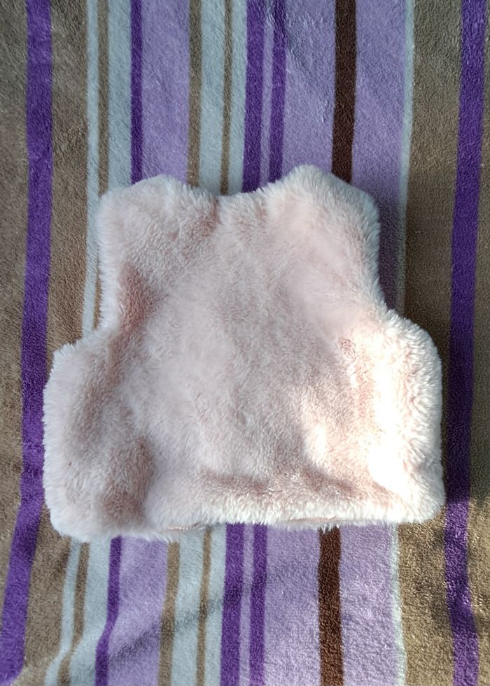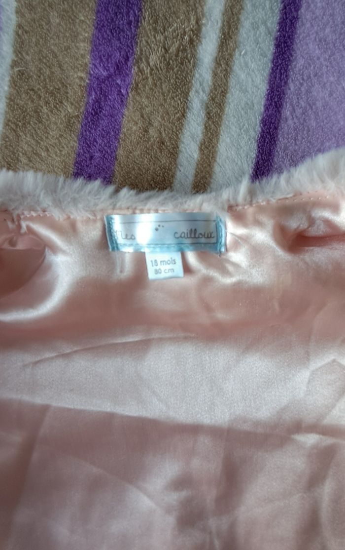 Boléro rose, sans manche, peu porté. En très bon état. Taille 18 mois (80 cm).