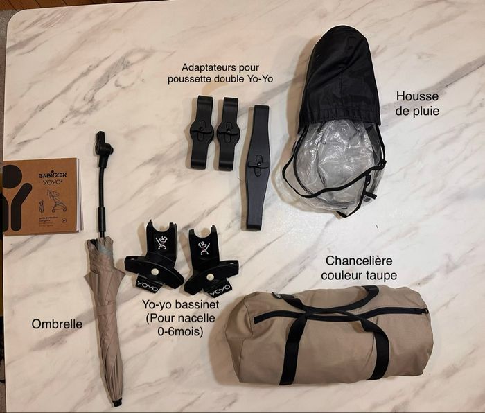 Je vends une poussette Babyzen Yoyo 3, avec cadre noir et pack couleur noir, adaptée pour un enfant de 6 mois à 4 ans (jusqu’à 22 kg) achetée en 2023. Très pratique pour les déplacements, compacte, légère et acceptée en cabine avion. ✅ Inclus dans le lot principal : * Châssis Yoyo Babyzen noir * Assise 6+ noire * Capote noire avec ses deux arceaux 💧 Excellent état général, soigneusement entretenu. Entièrement nettoyée et désinfectée pour la vente (textiles + châssis). ⸻ Accessoires disponibles à la vente en supplément : * Chancelière : couleur Taupe * Ombrelle : couleur Taupe * Housse de pluie * Adaptateurs pour poussettes doubles * Adaptateurs siège auto * yoyo bassinnet (pour nacelle) * Paire de mouffles