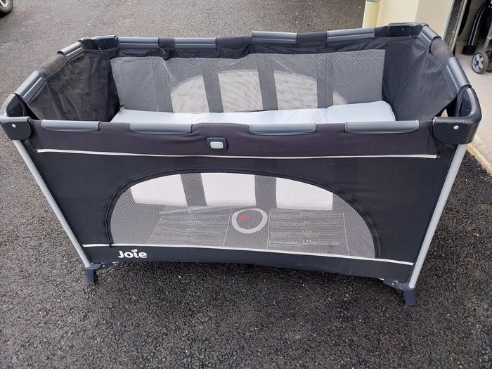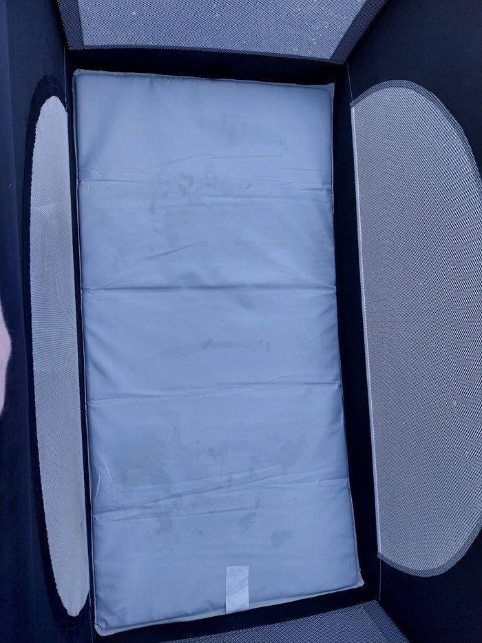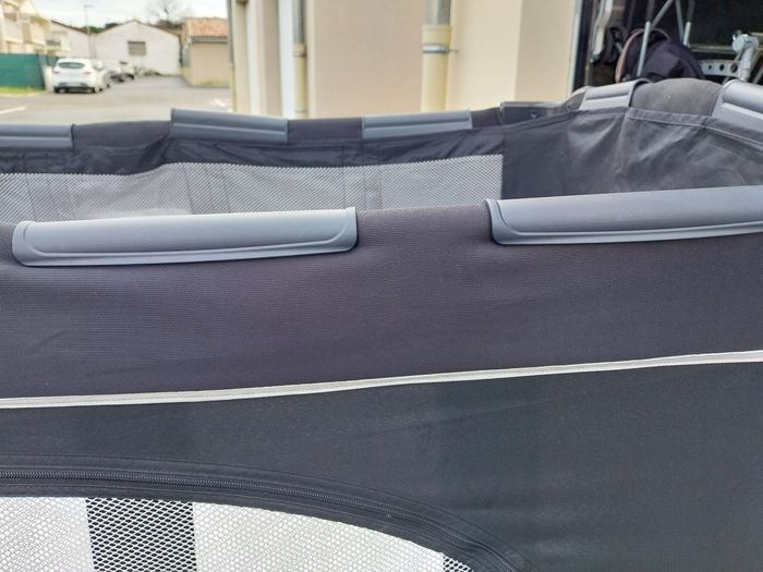 Lit évolutif avec position haute pour la période nourrisson. Il s'ouvre sur un côté grâce à une fermeture éclair ce qui laisse plus de mouvement quand bébé grandit. Seul bémol : le matelas qui est imperméable et propre garde quelques traces de petits accidents passés.