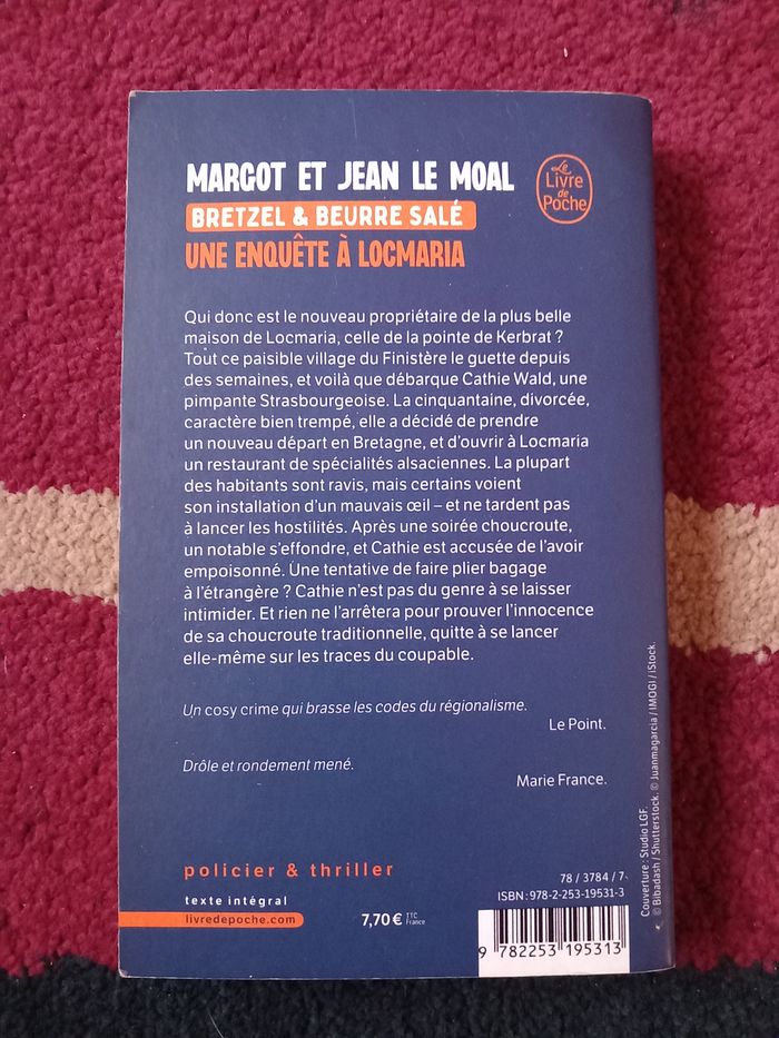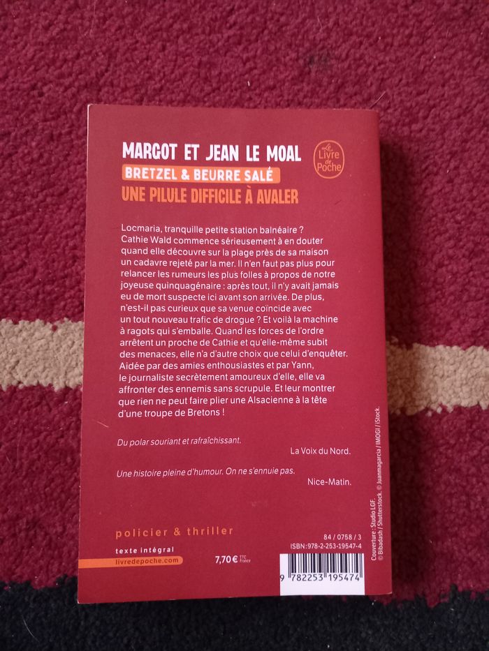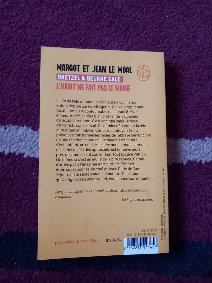 Je vends les trois premiers tomes de la célèbre série de cosy mystery breton "Bretzel et Beurre Salé", écrits par Margot et Jean Le Moal. 🥨🌊 ​Parfait pour s'immerger dans l'ambiance de Locmaria avec une bonne dose d'humour et de mystère ! ​Le lot comprend : ​Tome 1 : Une enquête à Locmaria ​Tome 2 : Une pilule difficile à avaler ​Tome 3 : L'habit ne fait pas le moine ​✅ État : Bon état (format poche). Les couvertures sont propres et les pages ne sont ni cornées ni annotées. 📦 Envoi : Rapide. ​#bretzeletbeurresalé #cosymystery #locmaria #polar #bretagne #livre #poche #suspense #margotlemoal #jeanlemoal #lotlivres