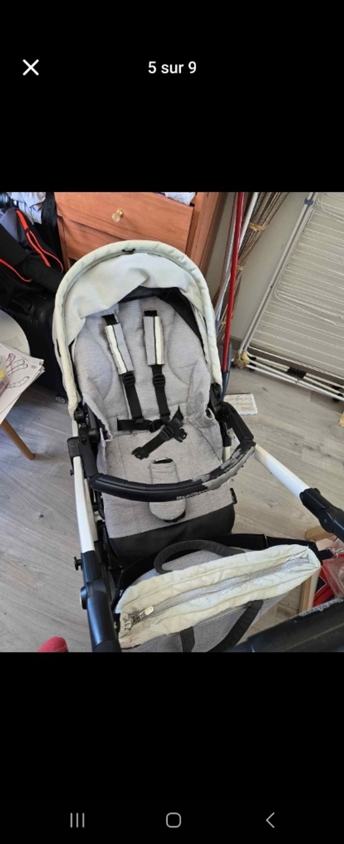 Vend le lot complet comprennant: - le châssis de la poussette avec assise réversible ( face ou dos à la route) + le couvre jambes - le sac à langer - le siège auto + couverture adaptée - la base isofix - le landeau - la base du landeau à roulette - la protection de pluie du landeau Le fourreau s'effrite un peu mais il se change pour 16e environ ( j'ai prévu de le commander prochainement si la poussette ne part pas de suite). Uniquement en main propre sur Lesparre