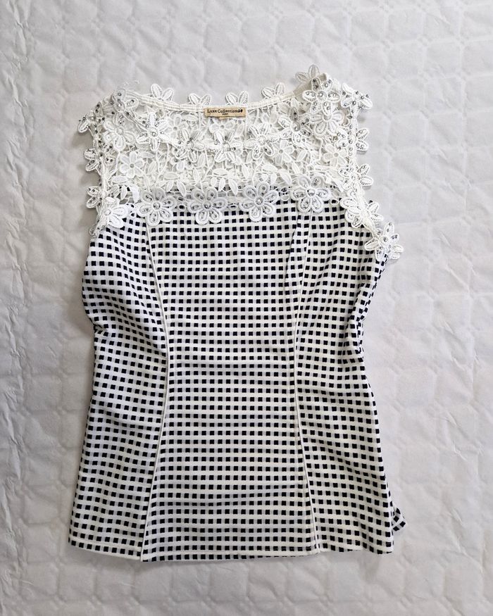 Top Vichy Chic & Dentelle Strass – Luxe Collection Paris – Taille S - photo numéro 1