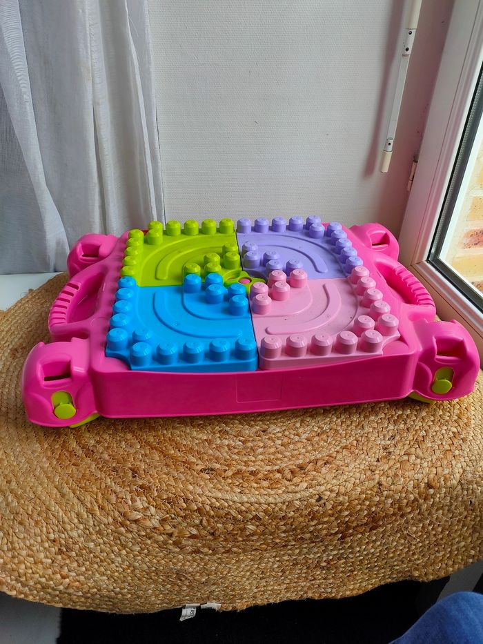 Table de jeu pour brique Mega bloks, coloris girly. Vendu sans les briques. Elle est en très bon état. Prix ferme, PAS DE NÉGO !!!