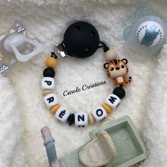 Attache tétine en silicone PERSONNALISABLE tigre 3d