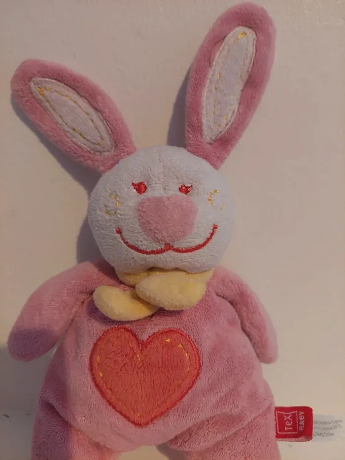 Tex - petite peluche lapin rose coeur sur le ventre - photo numéro 1