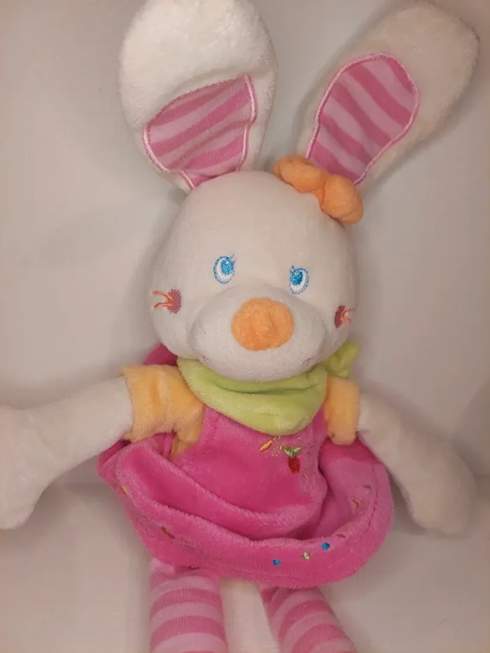 Mots D'enfants Doudou Lapin Robe Bandana Rose Vert Jaune Blanc Broderie Poussin Pomme