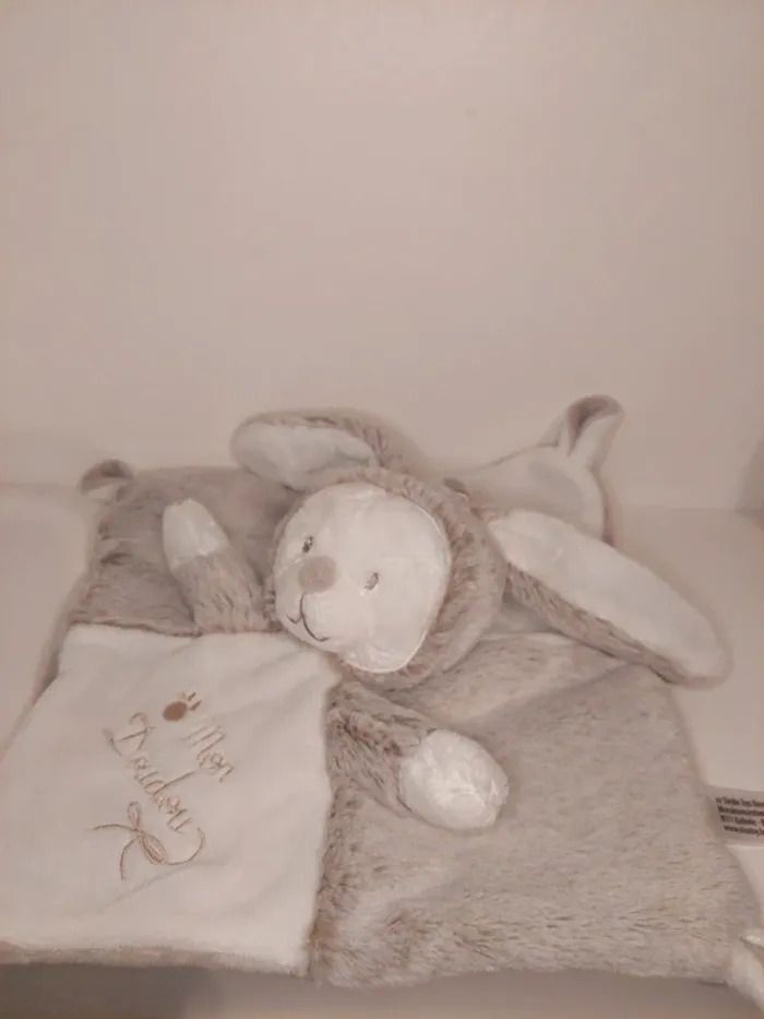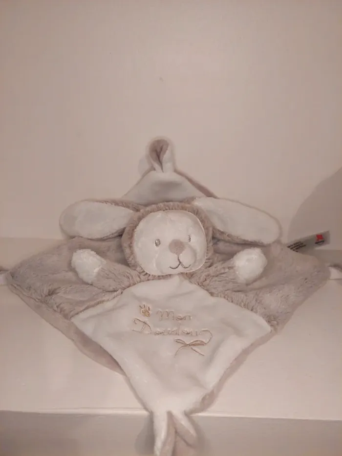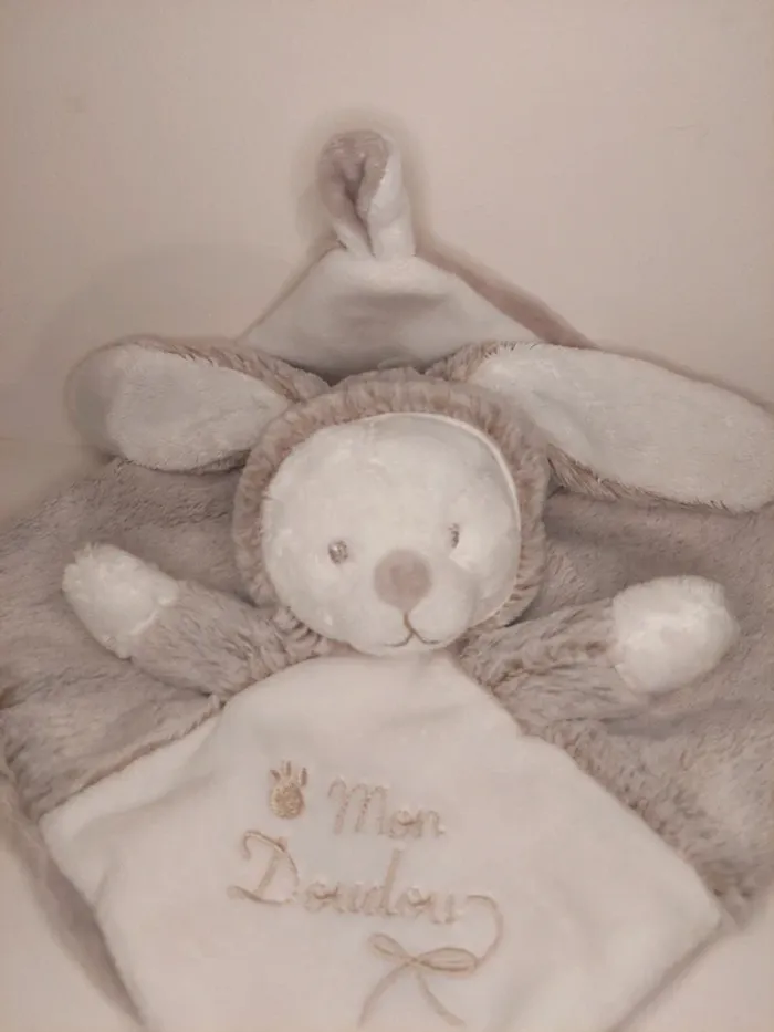 Nicotoy Laline nature Mon doudou plat ours déguisé en lapin blanc gris