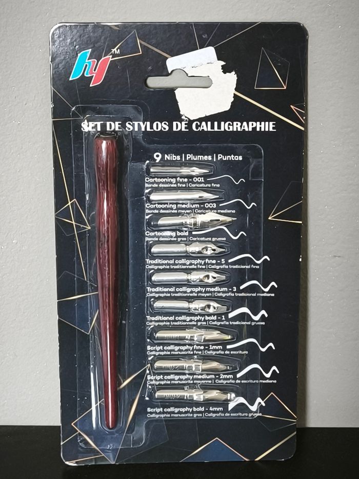 NEUF Set de calligraphie et de dessin. Contient un porte-plume et 9 plumes interchangeables