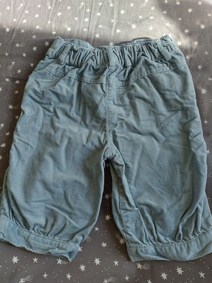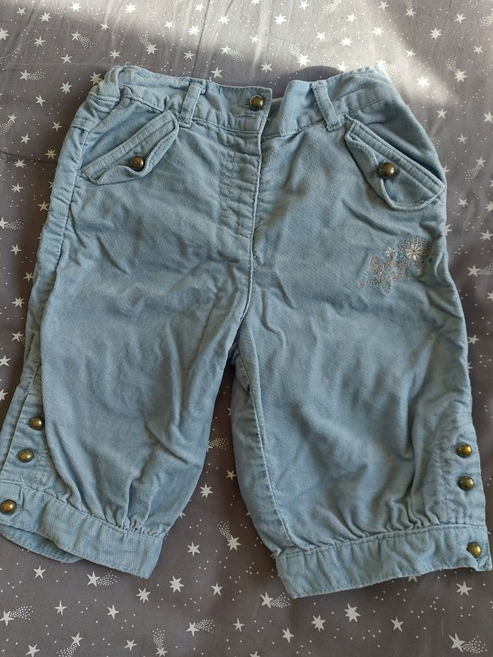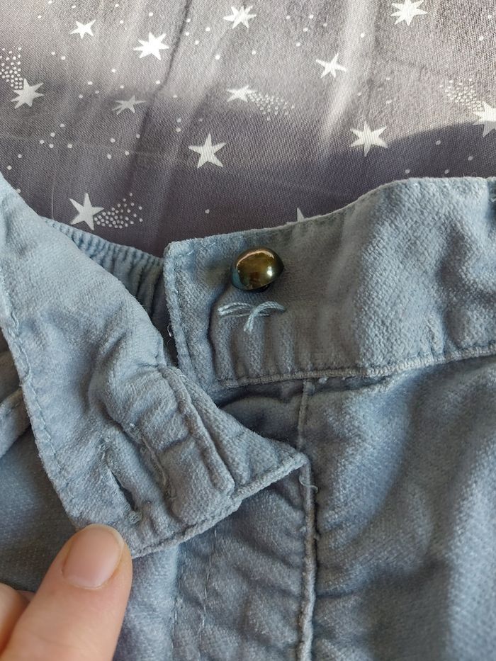 Pantacourt bleu gris en velours, Manque un bouton au niveau de l'attache devant
