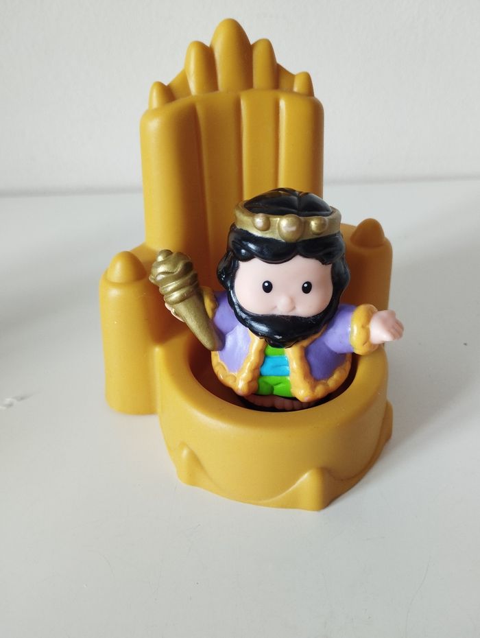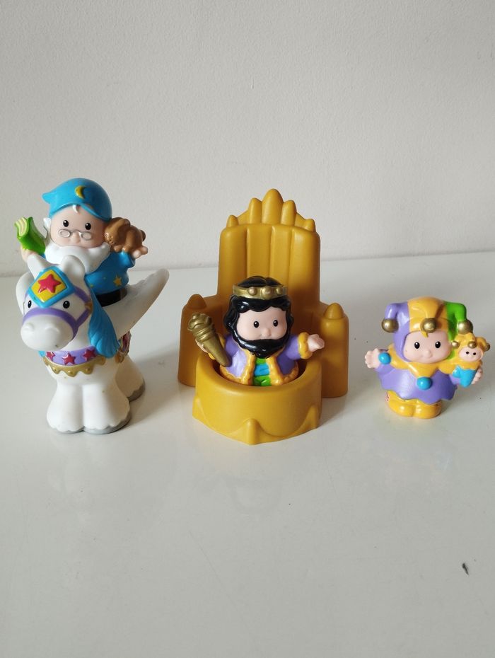 Figurine my little people, set royal. Contient 3 personnages et 2 accessoires. Le roi et son trône, le chanteur et Pégase et le bouffon. Édition 2005. Bon état général.
