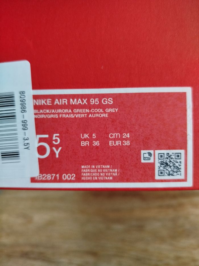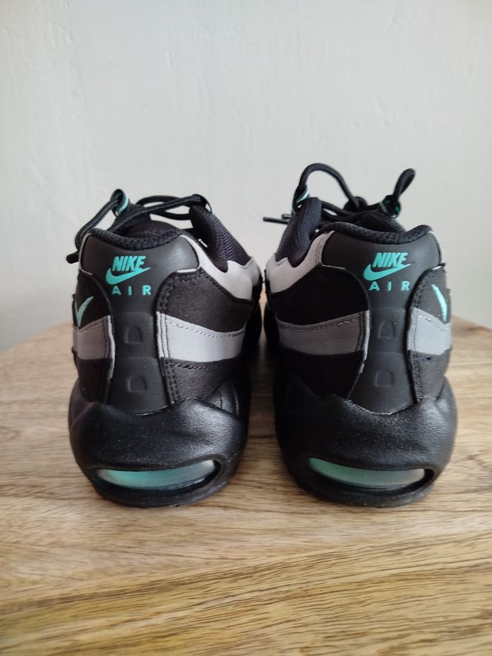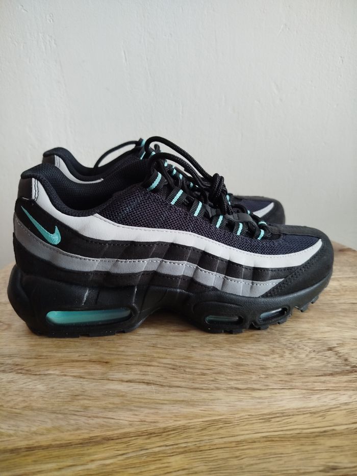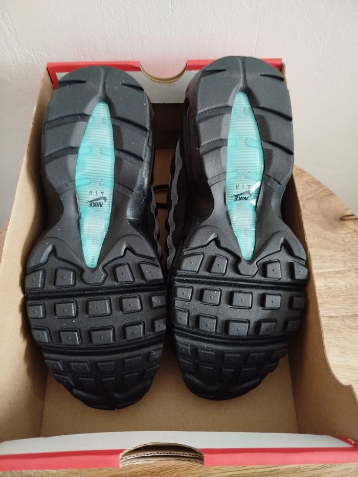 Je vends cette paire de baskets Nike pour enfant. - Marque : Nike - Pointure : 38 - Couleur : noir & gris - Modèle : Air Max 95 - État Neuf Boîte sans couvercle N'hésitez pas à me contacter pour plus d'informations ou de photos.