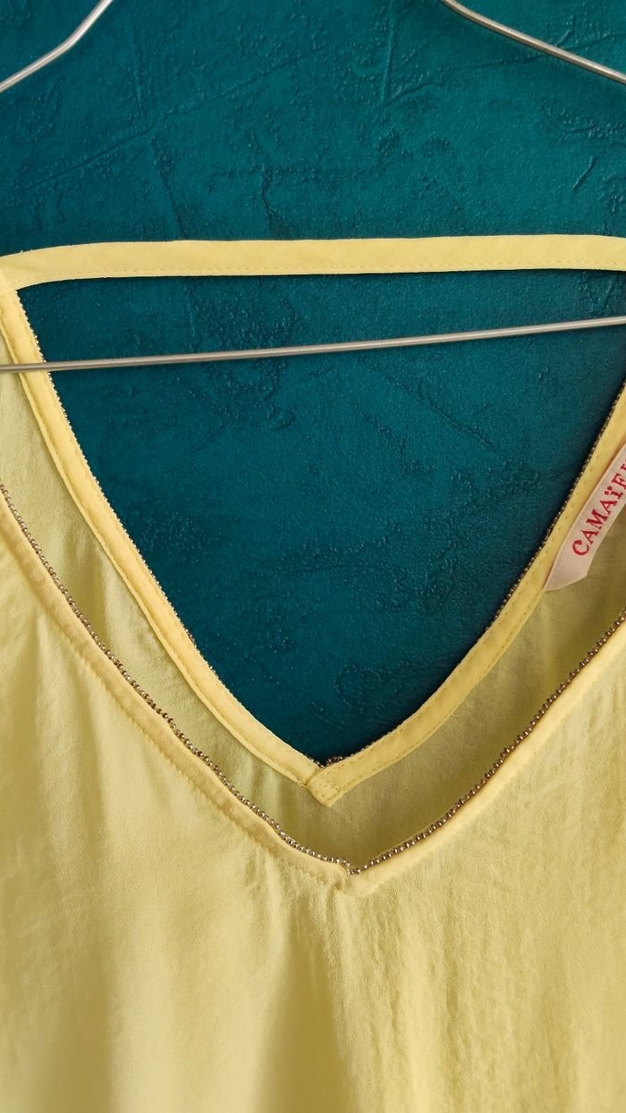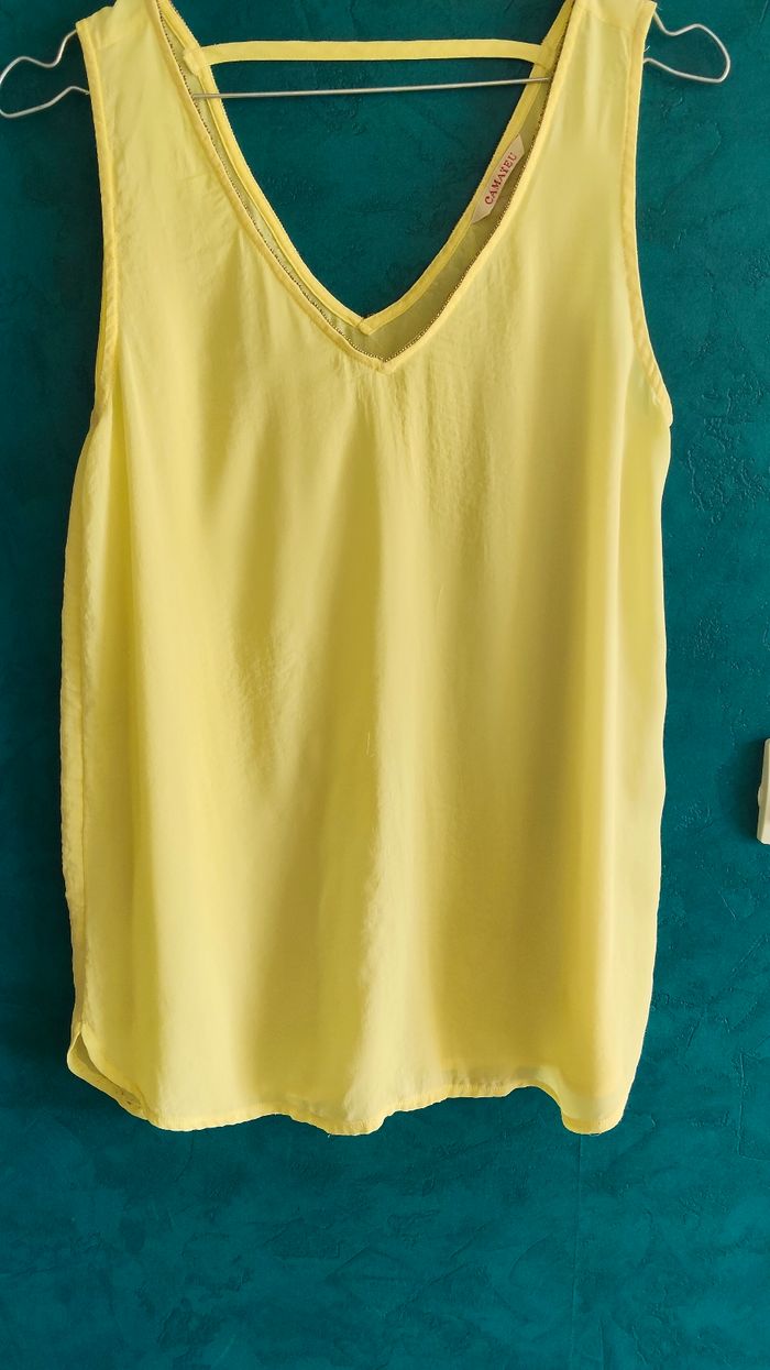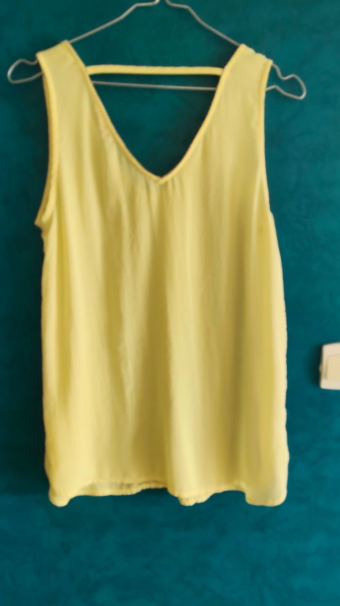 Haut camaïeu, matière légère un peu transparente, quelques marques sur le devant (cf photo). Détails sur l'encolure, haut du dos en V. Plus d'étiquette mais correspond à un 36-38 (taille que je faisais quand je le mettais). Je mets les longueurs en dessous : Longueur total environ 66 cm Longueur sous bras environ 44 cm Pas d'autres défauts, pas de tâche N'hésitez pas à me demander pour plus de détails #thethe27femme38 #thethe27femme36