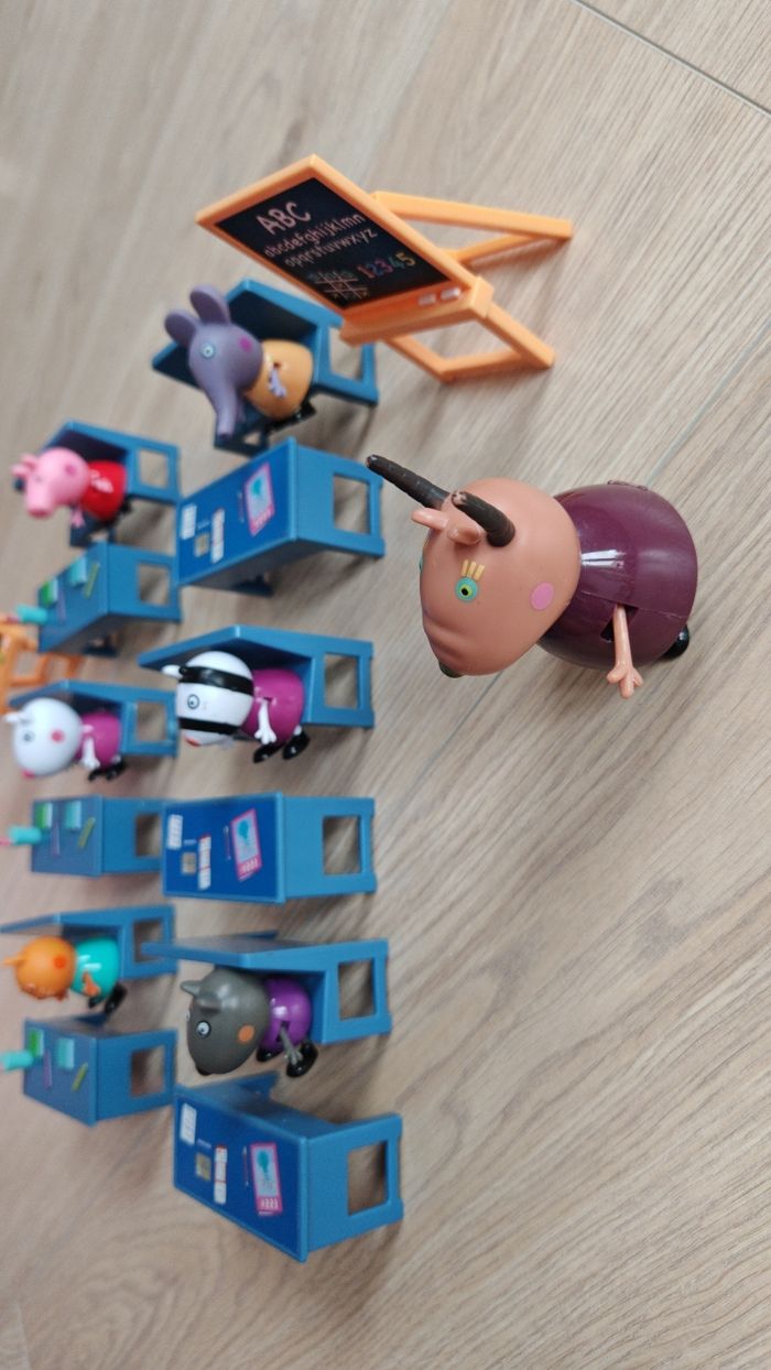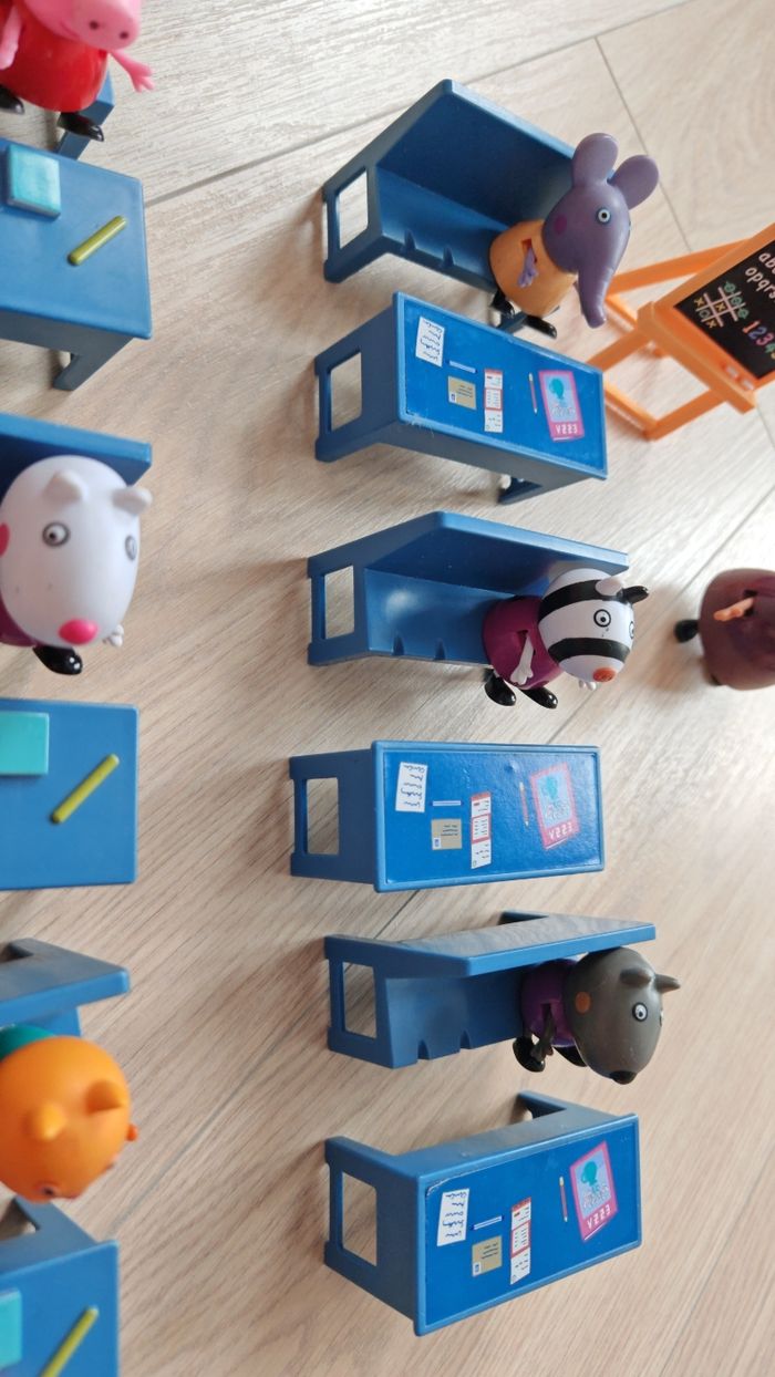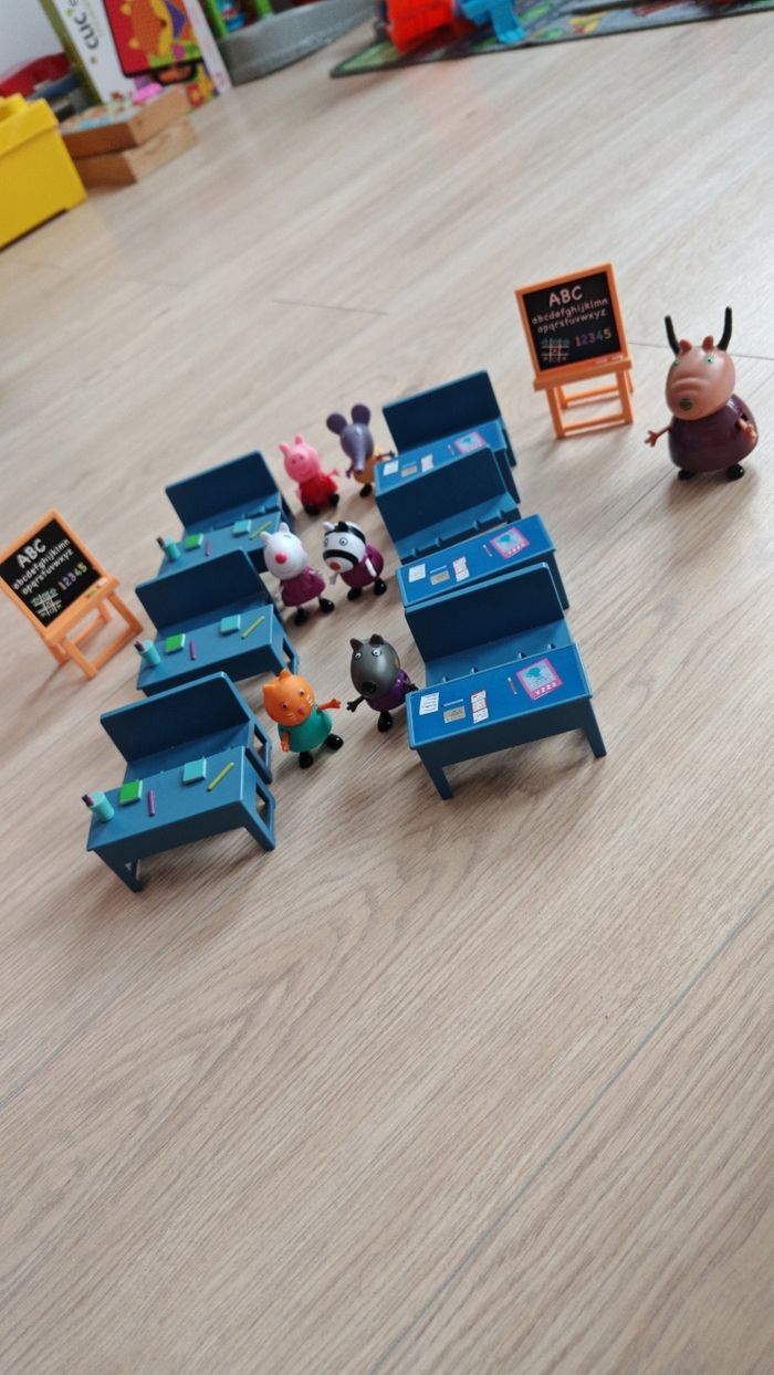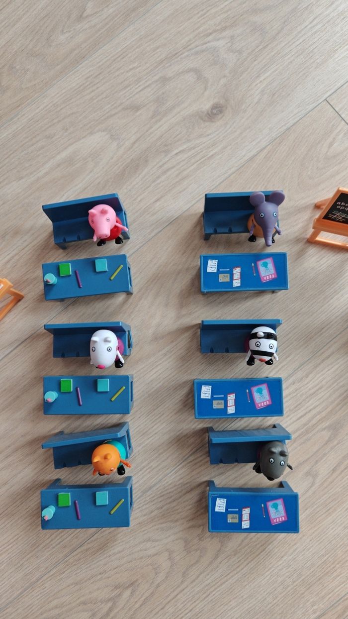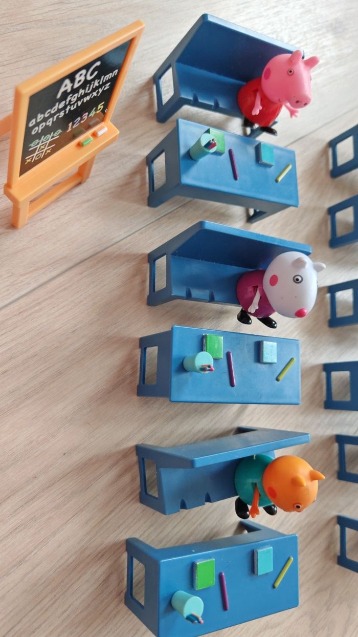 Salle de classe X2 Peppa pig très bon état juste le pied d'un banc et abîmé voir l'avant dernière photo, envoie rapide Le jour même ou le lendemain