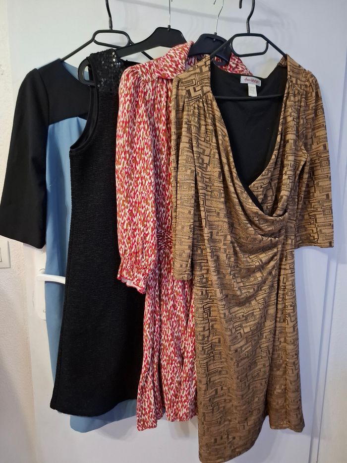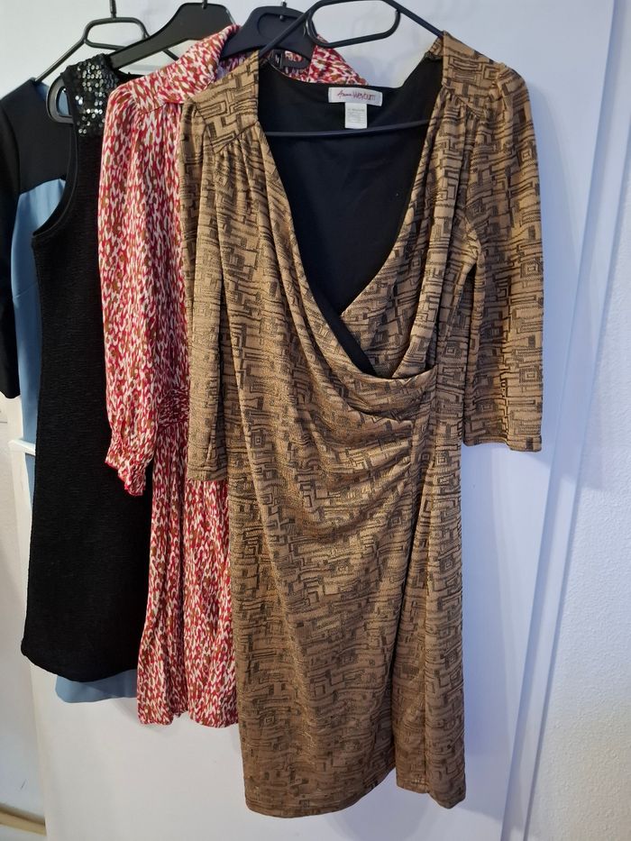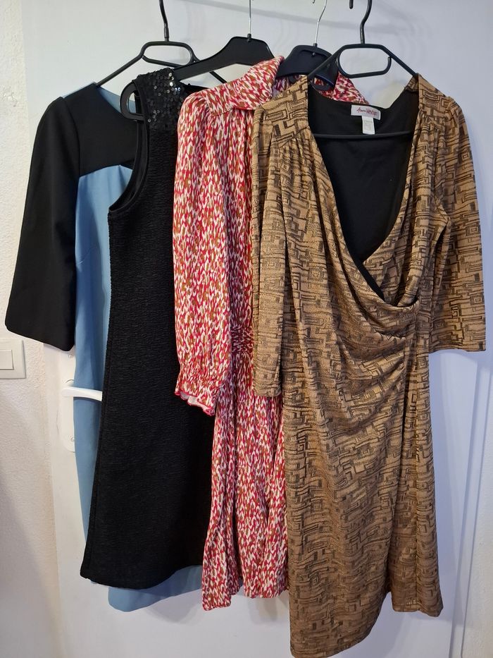 Lot 4 robes taille 38 en très bon état Robe bleu sinequanone Robe beige noir Anne weyburn taille 38/40 Robe tissaia bordeaux Robe noir promod