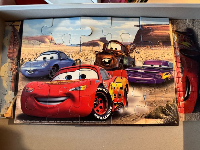Lot puzzle x5 Disney cars Une pièce a été scotché voir photo Il est complet