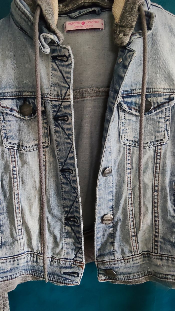 Veste en jean courte à capuche taille 2 - photo numéro 2