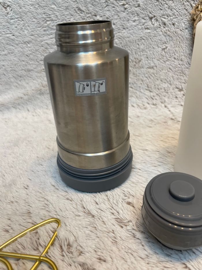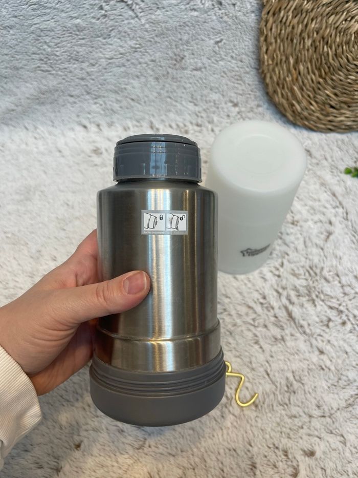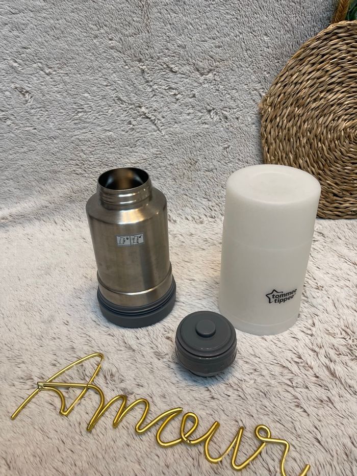 Le thermos réchauffe-biberon est idéal pour les voyages car il permet de réchauffer plusieurs biberons dans la journée, où que vous soyez, sans électricité. Il garde l'eau à la bonne température pour la préparation des biberons et des petits pots. 2 en 1, son couvercle sert aussi de récipient pour le réchauffage du biberon et son mécanisme d'ouverture/fermeture à bouton-pression permet de doser le liquide plus facilement. Spécialement conçu pour les biberons Tommee Tippee. Design compact pour le ranger dans le sac à langer. Matière en inox isotherme. S'utilise seul, sans électricité. Sans BPA.