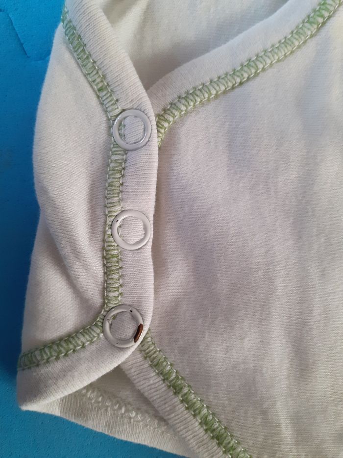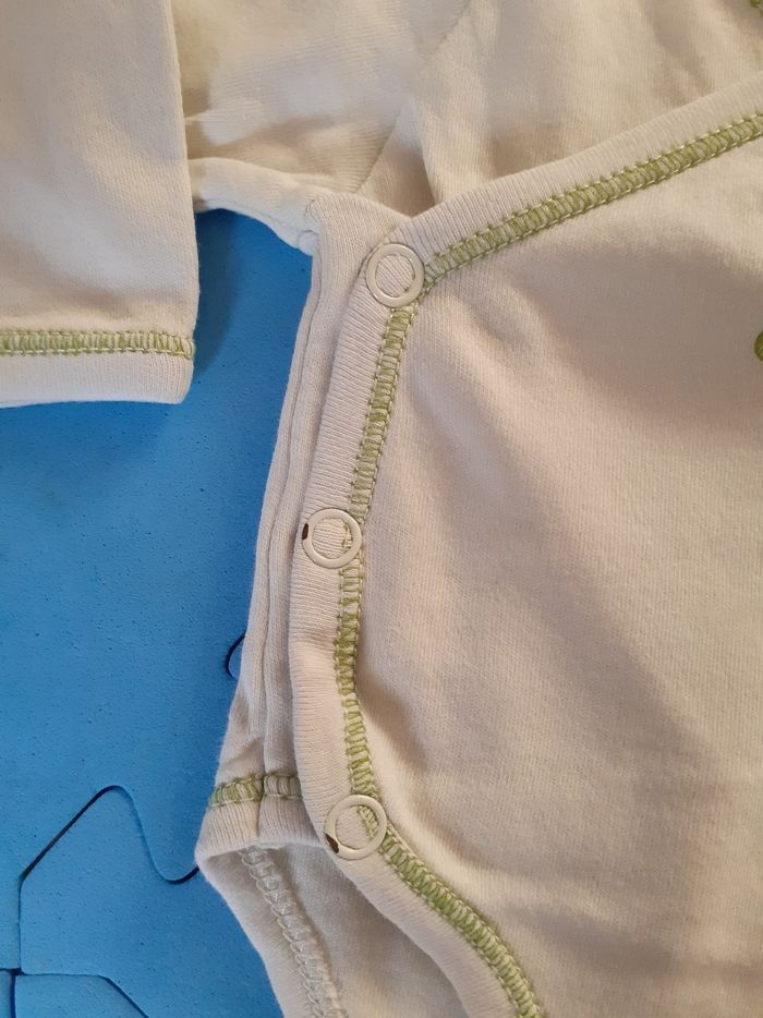 Vends lot de 3 body manches longues, 0 mois. Le body vert présente des traces d'usure sur les boutons pressions (voir photos)