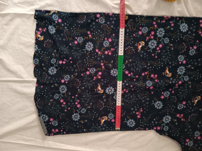 Vend reste de tissus Oiseaux et fleurs. Utilisé pour faire un pull a ma fille. J'ai prit les mesures de chaque partie afin que vous voyez si la taille correspond a votre projet. Si besoin de plus d'informations n'hésitez pas a me demander.