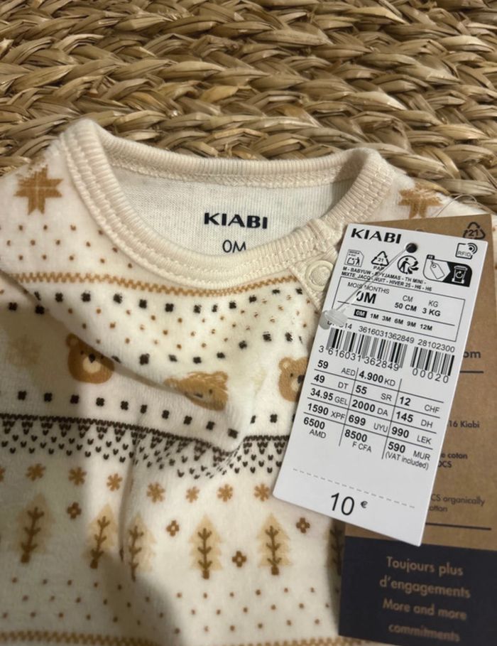 🧸 Pyjama 2 pièces motifs ourson Le haut qui s’attache avec le bas Taille 0 mois de la marque Kiabi Petites oreilles d’ours sur les pieds 😍 Neuf avec étiquettes MIXTE