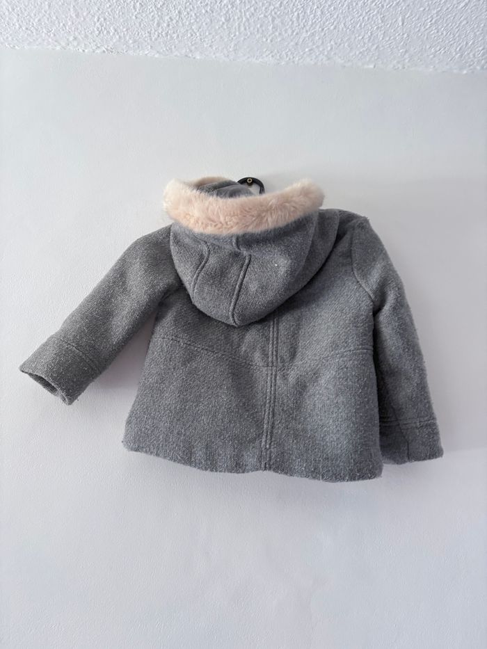 Manteau fille chaud – gris avec capuche à fourrure rose – Kiabi – 3 ans