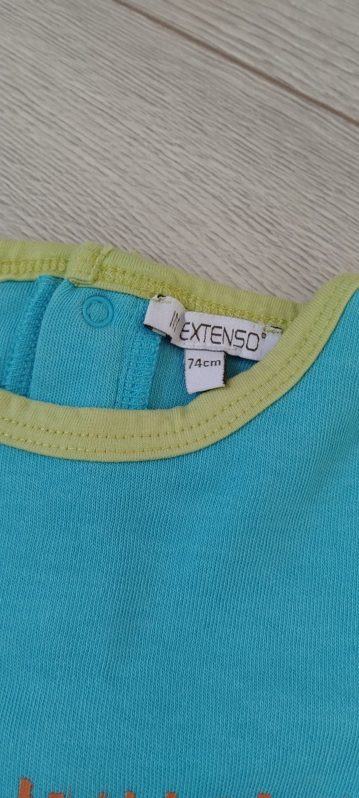 Bonjour, Je vends ce pyjama fin pour garçon en taille 12 mois de la marque in extenso en très bon état, mise a part le dessin abîmé voir photo