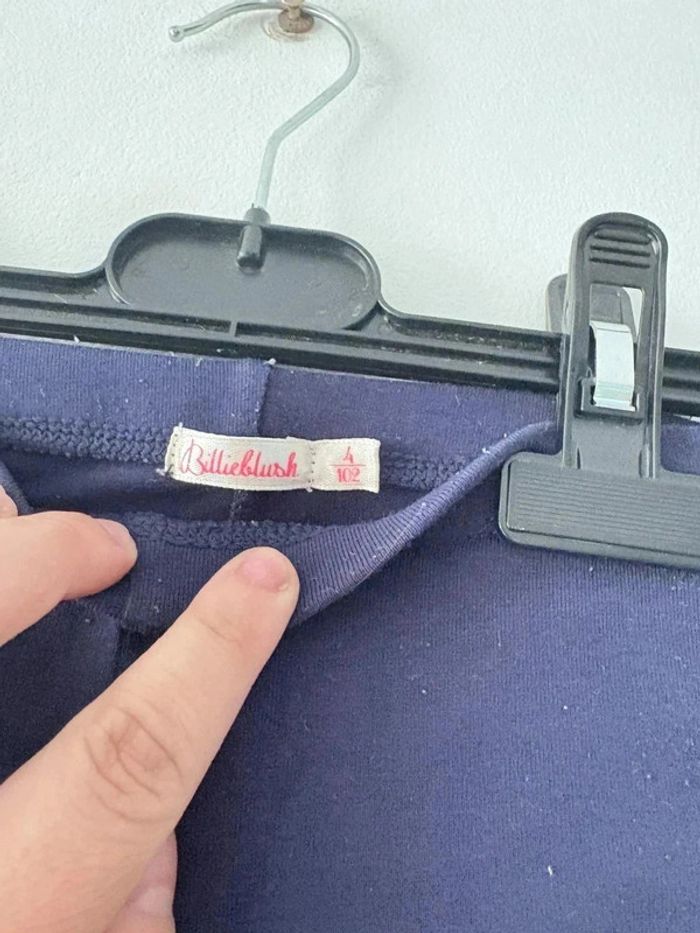 Legging confortable et stylé pour fille, parfait pour le quotidien ou pour ajouter une touche festive ✨ Sa bande de sequins ton sur ton sur le côté apporte un petit détail scintillant subtil. La taille élastiquée et la matière souple assurent un enfilage facile et un confort optimal 🌟 📌 Détails : 👖 Type : Legging fille 🎨 Couleur : Bleu marine 📏 Taille : 4 ans 🏷️ Marque : Billyblush 🧵 Matière : Souple et confortable ✅ État : Bon état (légère bouloche) 🧵 Coupe ajustée, taille élastiquée À porter avec un sweat oversize et des baskets pour un look casual, ou avec une blouse pour une tenue plus habillée 👌 🔍 Mots-clés : legging fille, Billyblush, taille 4 ans, bleu marine, sequins, basique enfant, look quotidien, vêtement confortable