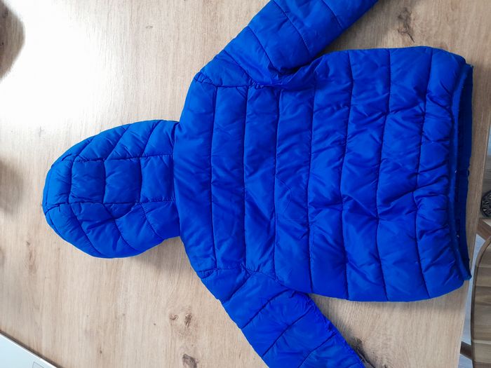 Je vends cette doudoune enfant de la marque Tex, de couleur bleue. - Type de produit : Doudoune - Marque : Tex - Taille : 2-3 ans - Couleur : Bleu - Style : Unisexe - Caractéristiques : capuche, 2 poches.