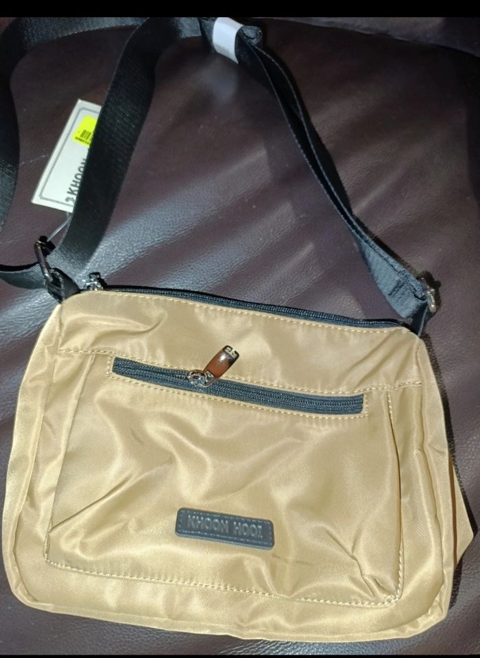 Bonjour et bienvenue 🌷 Je vous propose un sac jjamais utilisé, encore avec son étiquette. Couleur : beige camel Matière : tissu résistant Détails : Poche avant zippée Fermeture zippée principale Bandoulière réglable Logo « Khoon Hooi » sur le devant Idéal pour le quotidien : compact, léger et pratique pour transporter téléphone, portefeuille, clés, etc. État : Neuf Maison non-fumeur Mixte 📦 Envoi rapide et soigné. Une super occasion il se vend jusqu'à 20€