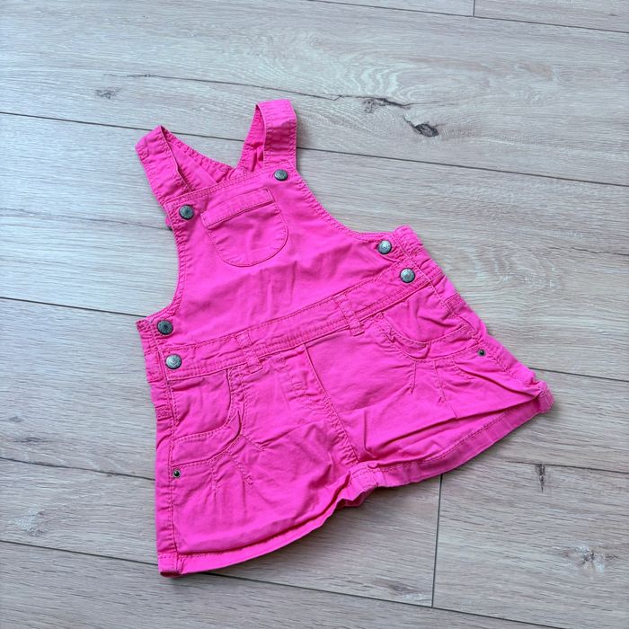 Salopette jupe fille Obaïbi (Okaïdi), taille 12 mois, coloris rose vif. Bretelles réglables par boutons et poches. Confortable et pratique pour l’été Très bon état Parfaite pour le quotidien, la crèche ou les sorties Envoi rapide et soigné