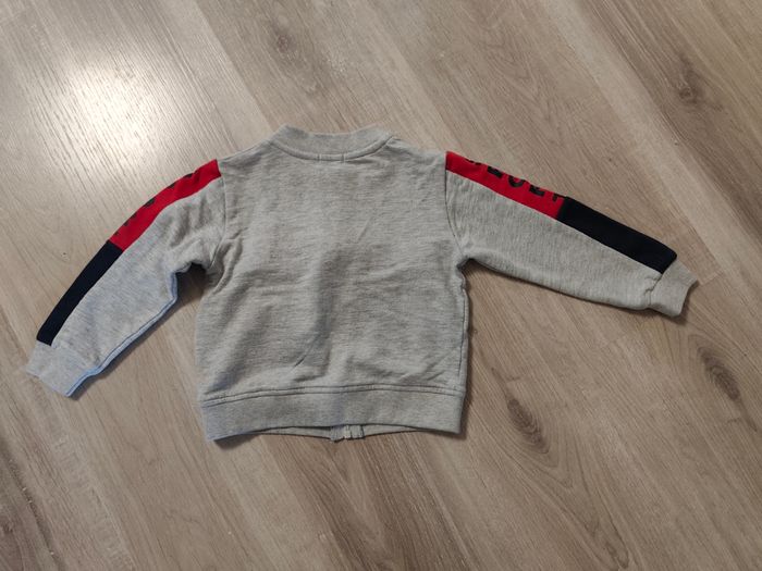 Je vends ce gilet / veste de la marque INFLUX pour enfant, de couleur grise avec bande rouge et bleue sur les manches. - Type de produit : Gilet - Marque : Influx - Taille : 3 ans - Couleur : Gris - Caractéristiques : Fermeture éclair, 2 poches latérales