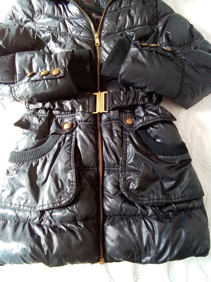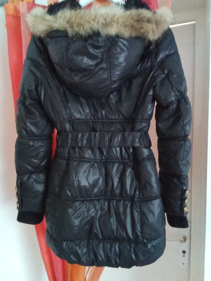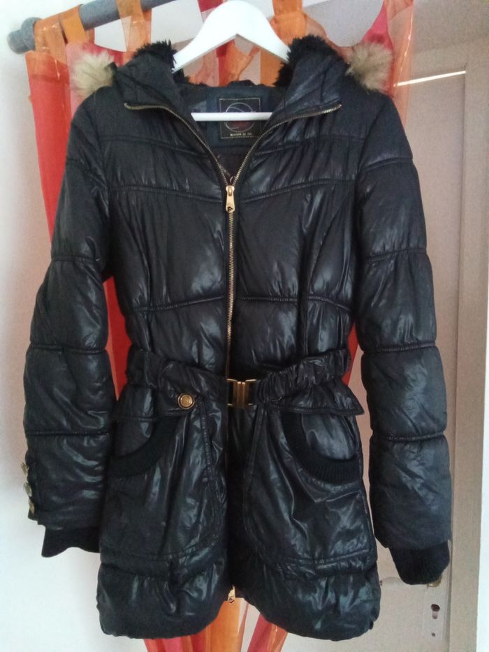 🌺 Jolie doudoune noire avec capuche fermée par zip et ceinture originale 🌺 Capuche avec fourrure amovible 🌺 2 poches sur le devant 🌺 Boutons dorés sur les manches et les poches 🌺 100% polyamide - doublure 100% polyester 🌺 Hauteur : 75 cm Largeur épaules : 38 cm Longueur manches : 65 cm 🌺 Agréable à porter 🌺 Taille 36