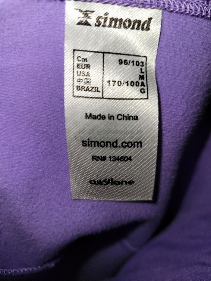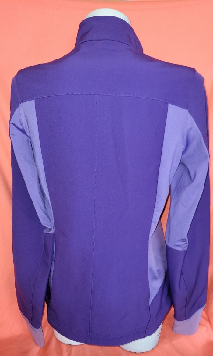 Veste technique Coupe vent - Anti transparente Taille L - Violet 2 poches zippées devant Fermeture zippée Bas des manches passe pouce Longueur 64 cm Épaule à épaule 40 cm Matières : 83% Polyester 10% Polyurethane 7% Elastane Très bon état