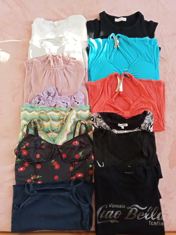 Lot divers hauts. Femme. Taille 36/38. Manches longues, courtes, bretelles,dos nus... Très bon état. Diverses marques. Envoie rapide et soigné 🤗. 10€ le lot.