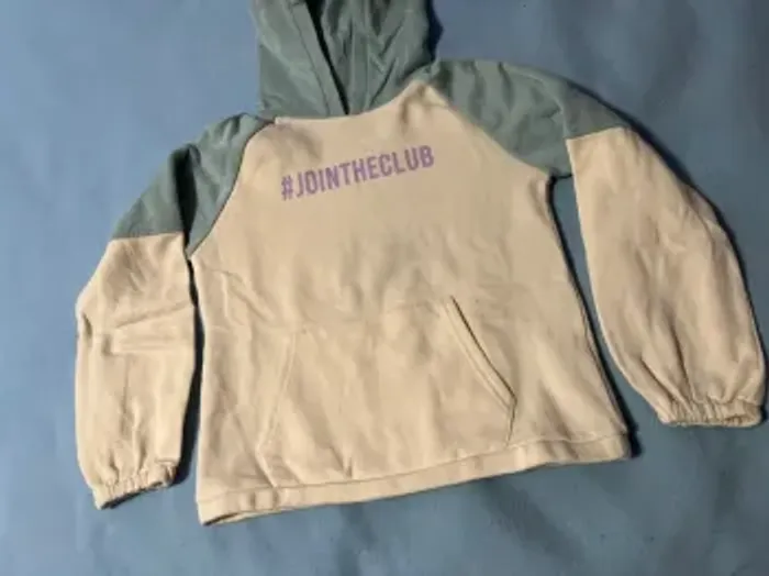 Excellent état, marque Kiabi, taille 10 ans (138-143 cm), couleurs crème et vert, capuche.