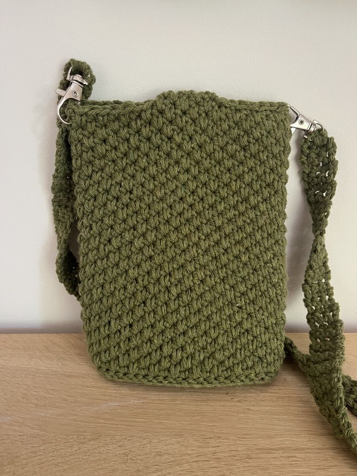 Cette pochette bohème à bandoulière est idéale pour transporter votre téléphone et quelques autres petits effets personnels où que vous alliez. Sa fermeture magnétique assure une sécurité supplémentaire, tandis que sa anse permet de la porter en bandoulière ou en écharpe. Sa conception légère en macramé de coton lui donne un style décontracté, parfait pour les journées d'été. Avec ses dimensions de 18cm x 13cm, anse 110 cm. elle offre assez d'espace pour ranger votre smartphone, des clés, un portefeuille et d'autres petits accessoires ou carte de paiement dans la pochette avant tout en restant discrète et passe-partout. Sa fabrication artisanale lui confère charme et durabilité pour les saisons à venir.