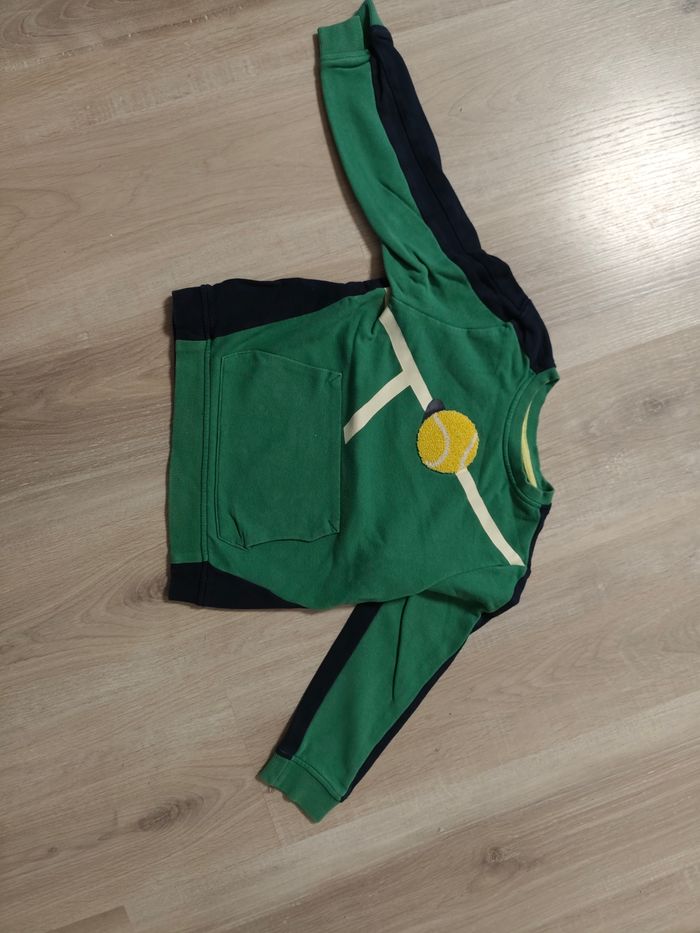 Je vends ce pull de la marque KIABI pour enfant, de couleur verte sur la face avant et bleu foncé sur la face arrière. - Type de produit : Pull - Marque : Kiabi - Taille : 5 ans - Couleur : Vert sur la face avant avec une balle de tennis, bleu foncé sur la face arrière.