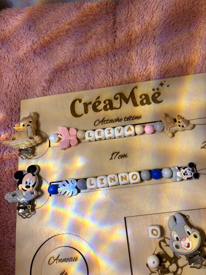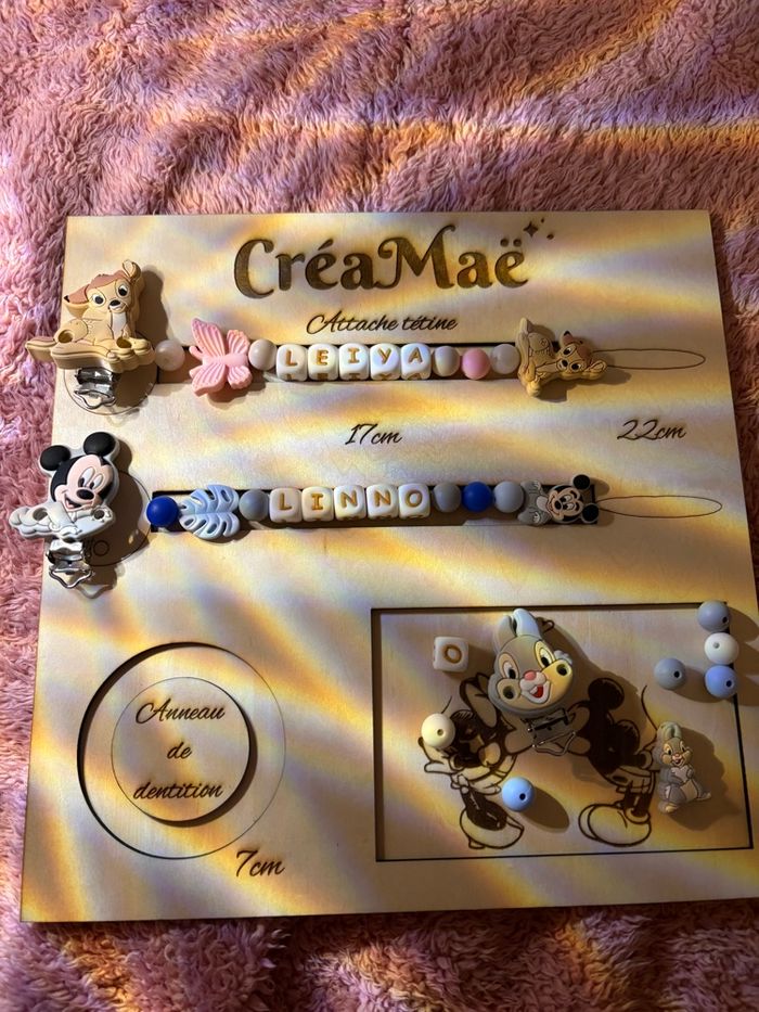 Très peu de lettre dorée. N’hésitez pas à venir en privé pour un modèle +1€ adaptateur mam #attachetetine #bebe #bambi #mickey #disney