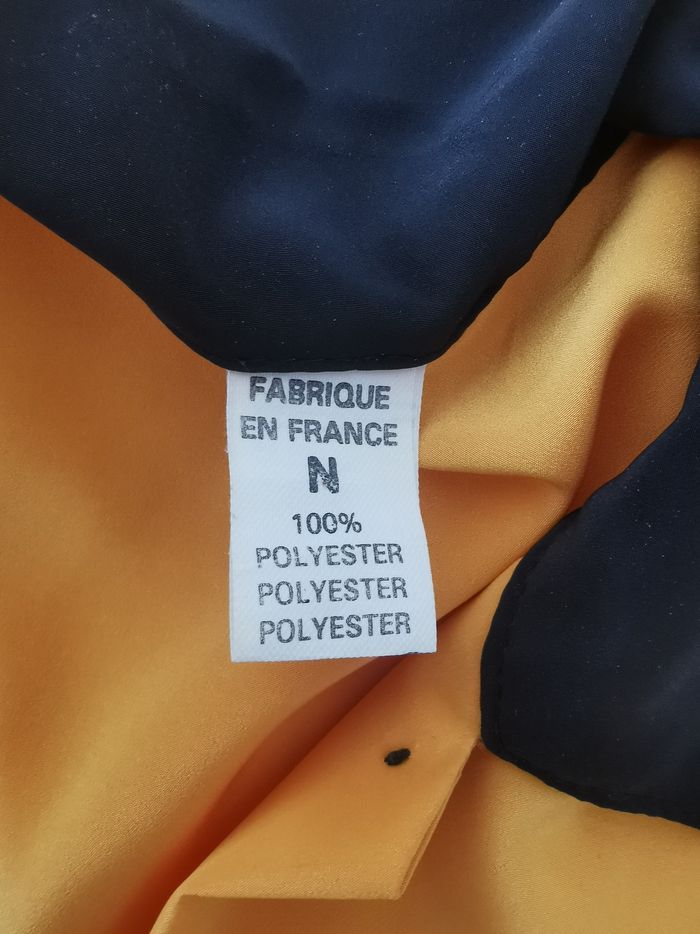 Chemise femme jaune vif, fabrication française, style graphique rétro chic, en très bon état. Les détails noirs contrastants (col, poches, boutonnière, poignets) apportent une touche élégante et tendance. 🔸 Matière : 100 % polyester 🔸 Coupe : droite, fluide 📏 Mesures à plat : • Épaules : 46 cm • Aisselle à aisselle : 60 cm • Longueur totale : 64 cm