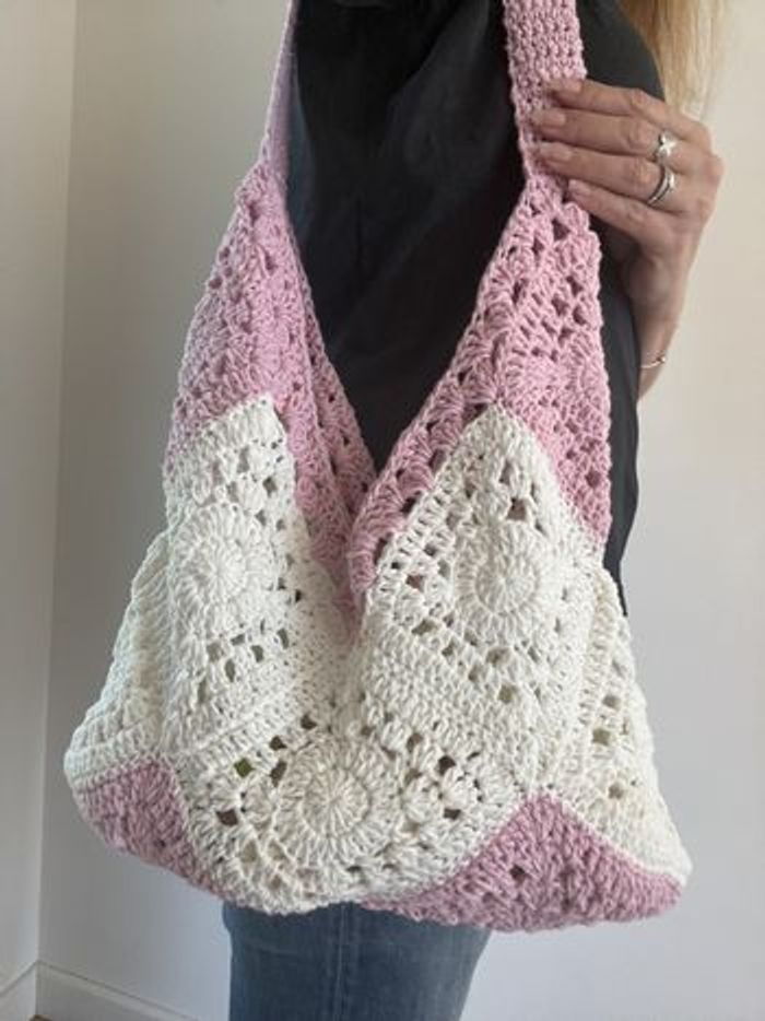 sac bohème carré grand mère blanc et rose - photo numéro 2
