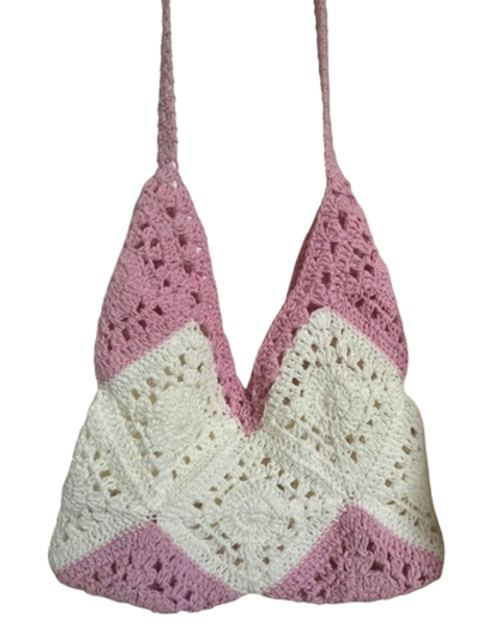 sac bohème carré grand mère blanc et rose