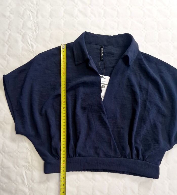 ​✨ Élégance et fluidité pour votre garde-robe ! ✨ ​Superbe haut bleu marine de la marque Tiffosi, une pièce chic et moderne qui n'a jamais été portée et possède encore son étiquette d'origine. ​Style : Une coupe cache-cœur très féminine avec un col chemise élégant. Le bas est élastiqué pour marquer la taille tout en gardant un bel effet bouffant et fluide. ​Coupe : Manches courtes de style chauve-souris (Loose fit) offrant une grande liberté de mouvement et un tombé impeccable. ​Taille : S (Small). Voir les photos avec mesures pour plus de précision (environ 45 cm de longueur). ​Détails : Article toujours avec son étiquette (prix d'origine 17,99€). Tissu léger avec une texture discrète très qualitative. ​État : Parfait, jamais porté, avec étiquette ​Ce haut est parfait avec un pantalon blanc pour l'été ou un jean taille haute pour un look "casual chic" de soirée. ​✨ Envoi rapide (24h/48h) et soigné. ✨ Réductions activées pour l'achat de plusieurs articles dans mon dressing : profitez des lots ! ​Hashtags : #tiffosi #blousefemme #cachecoeur #bleumarine #tailleS #chic #modefemme #etiquette #vendeurpro #hautfluide